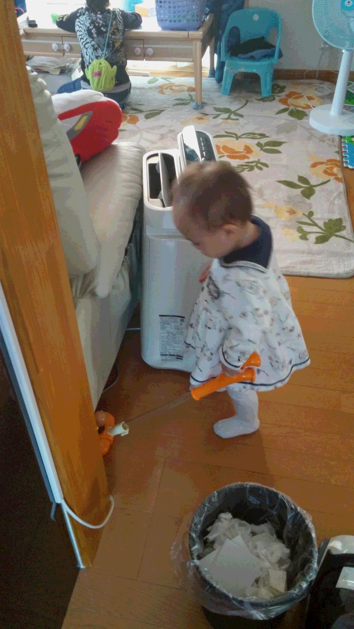 掃除は歩くのを覚えた頃から手伝ってくれています。