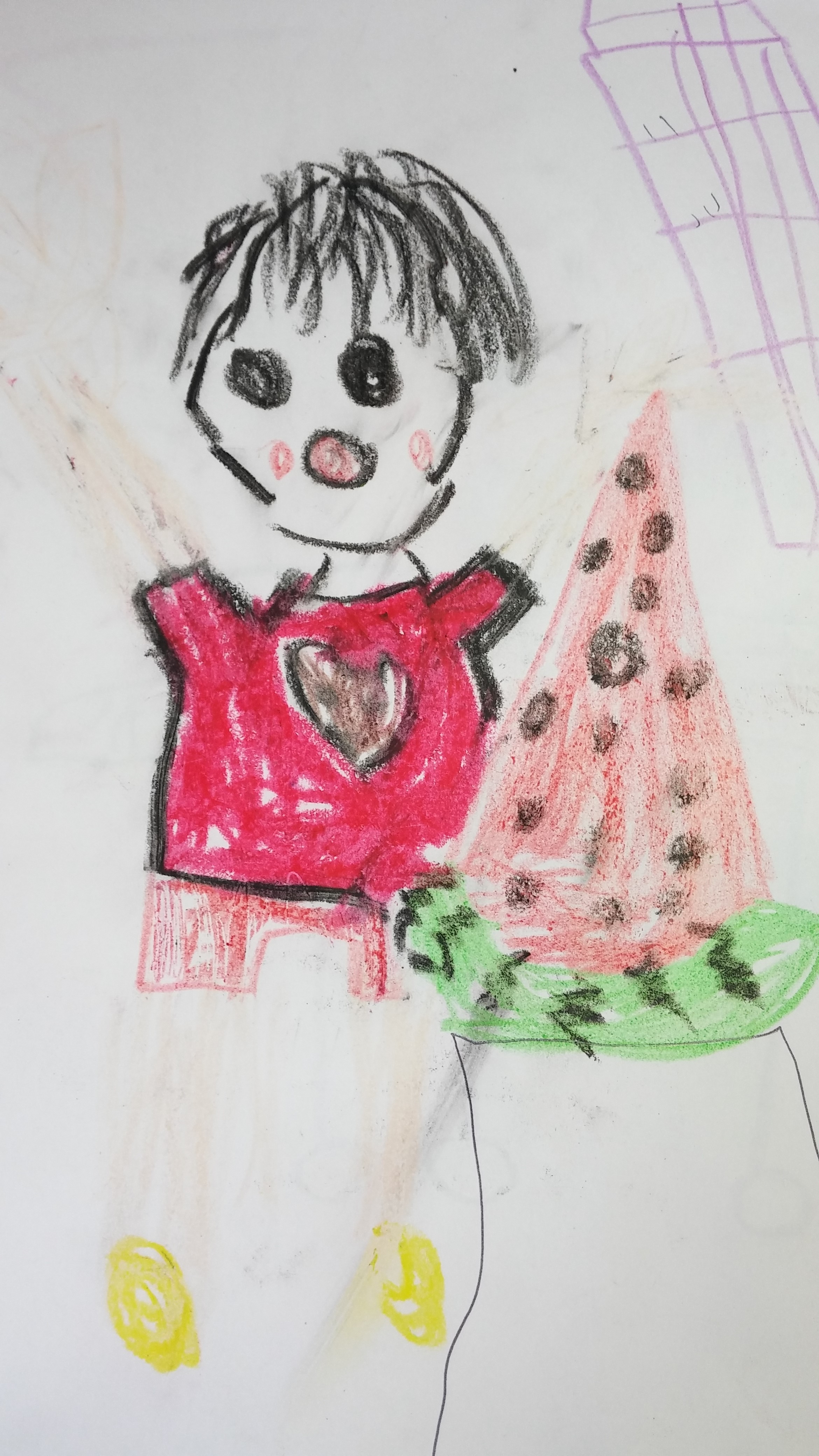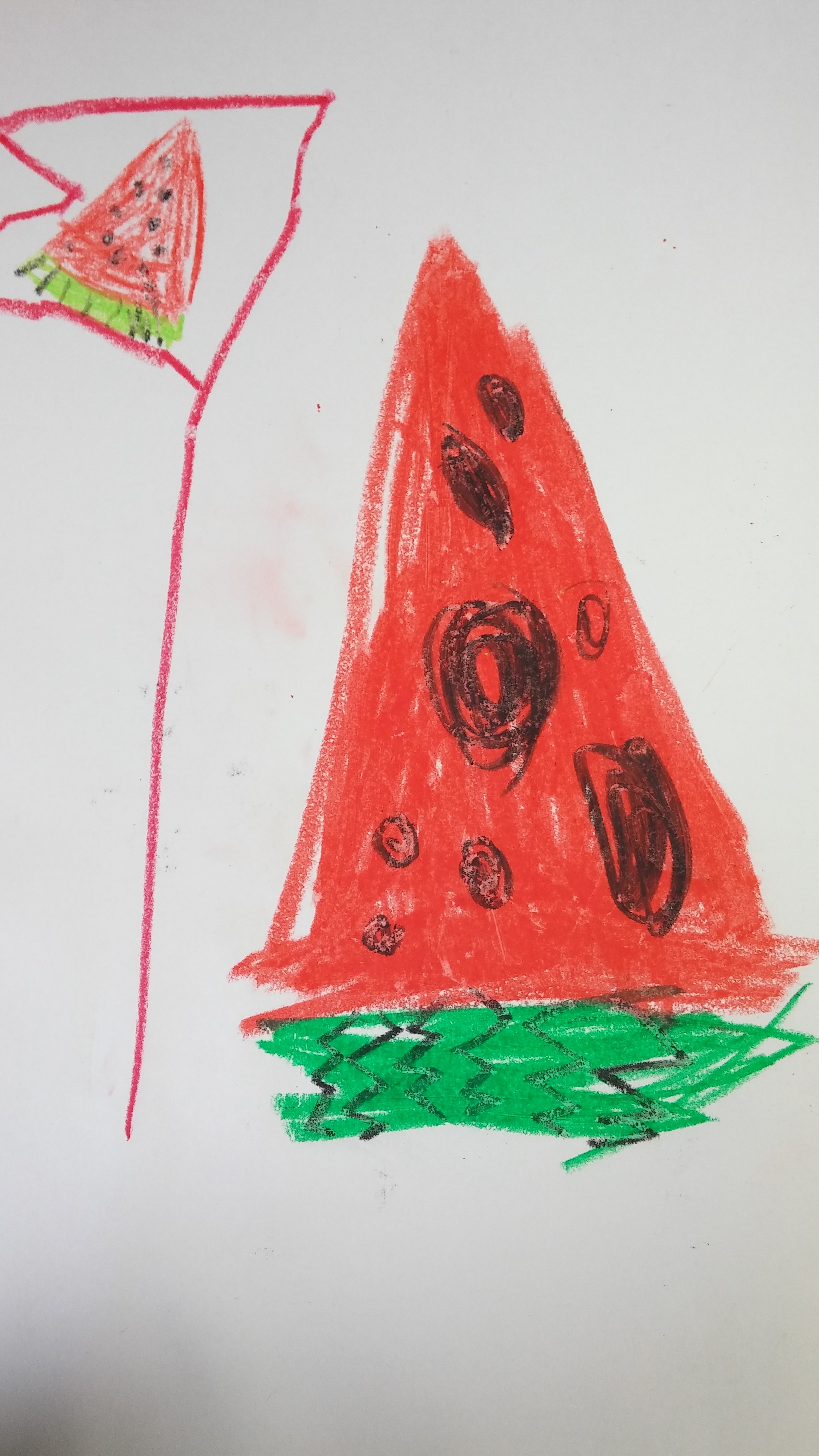 尾花沢スイカは有名ですね。スイカを思い出しながら描いてくれました。