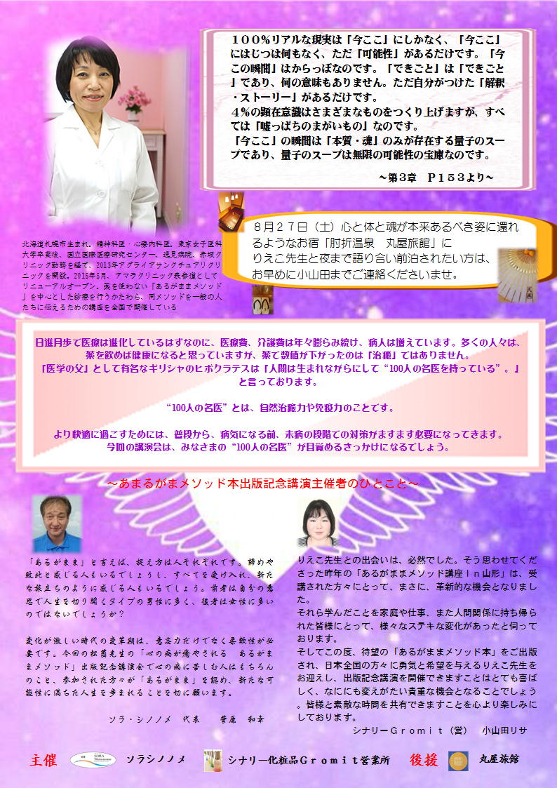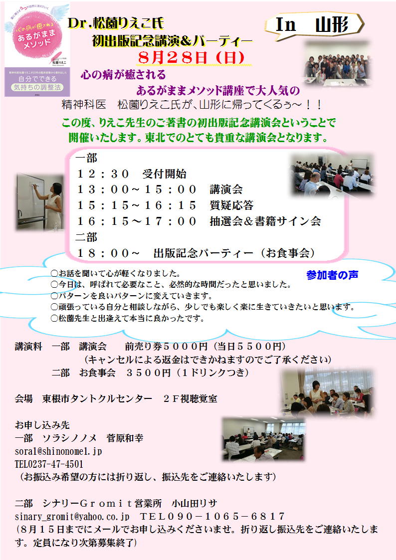 松薗 りえこ先生 「心の病が癒される。あるがままメッソッド」出版記念講演会のお知らせ!