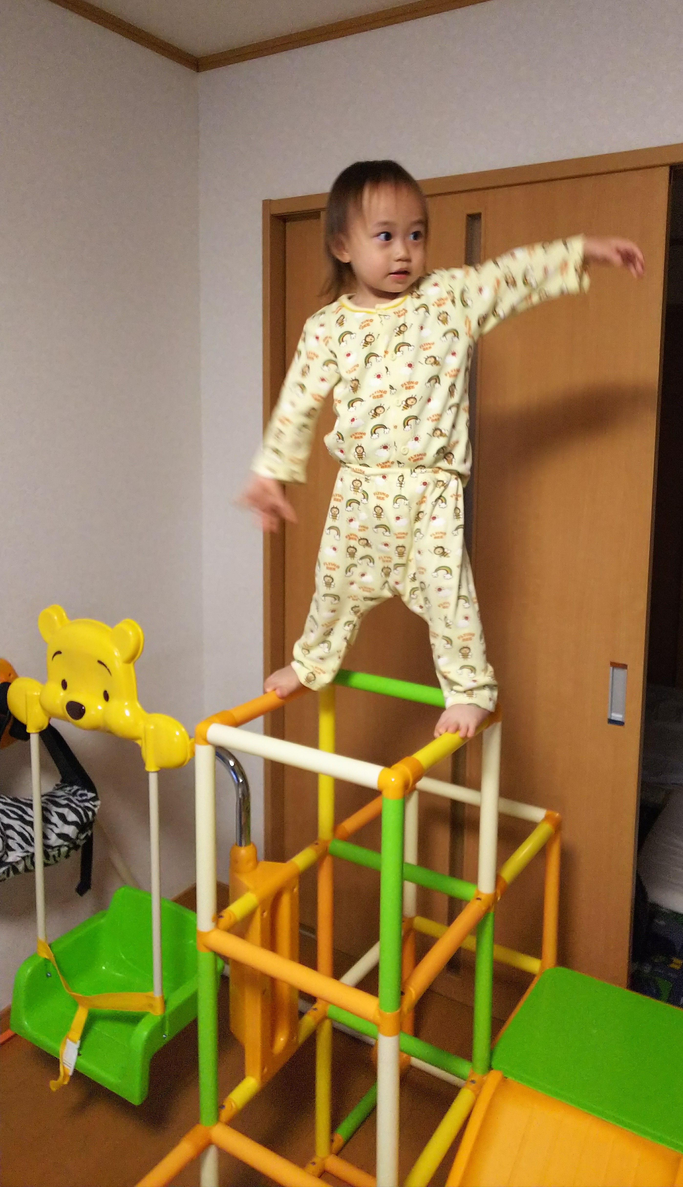 2歳になる前からジャングルジムに登って遊んでいてそうで、2歳になった時には、てっぺんでバランスを取って立つことができたそうです。