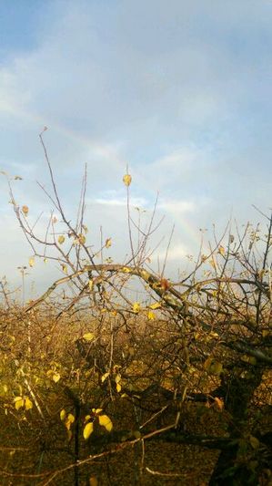 先日、木枯らしが吹いて、周りのリンゴ畑の葉が落ちて、その葉が黄色になりリンゴ畑の地面が真黄色になりました。